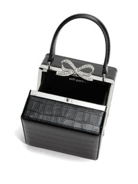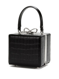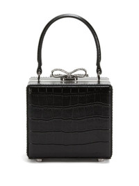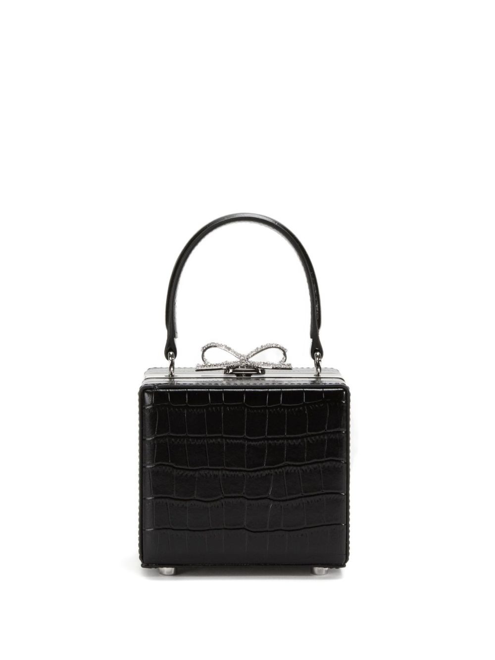 crystal-bow box handbag Highlights - Black - Crocodile-embossed - Top handle - Crystal-embellished bow - Box shape - Clasp fastening Imported Composition Lining: Polyester 97%, Elastane 3% Outer: Calf Leather 100% SIZE & FIT Measurement DEPTH 3.14 in(8 cm) HEIGHT 4.13 in(10.5 cm) WIDTH 3.93 in(10 cm)
