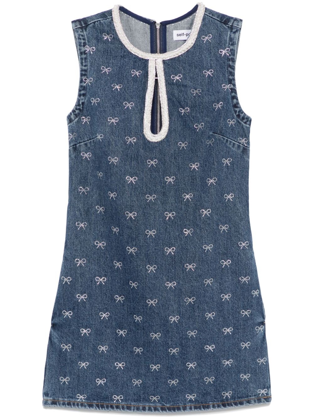 crystal-bow denim mini dress Highlights - Navy blue - Rear zip fastening - Two side inset pockets - Crew neck - Sleeveless Imported Composition Lining: Polyester 84%, Cotton 16% Outer: Cotton 100% SIZE & FIT Model measurements Height 5 ft 10 in(1.77 m) Bust/Chest 32.28 in(82 cm) Hips 35.03 in(89 cm) Waist 25.19 in(64 cm) FittingInformation Designed for a slim fit that sits just away from the body offering a close yet comfortable fit Sturdy and hard-wearing, this denim piece offers no stretch Washing instructions Dry Clean Only