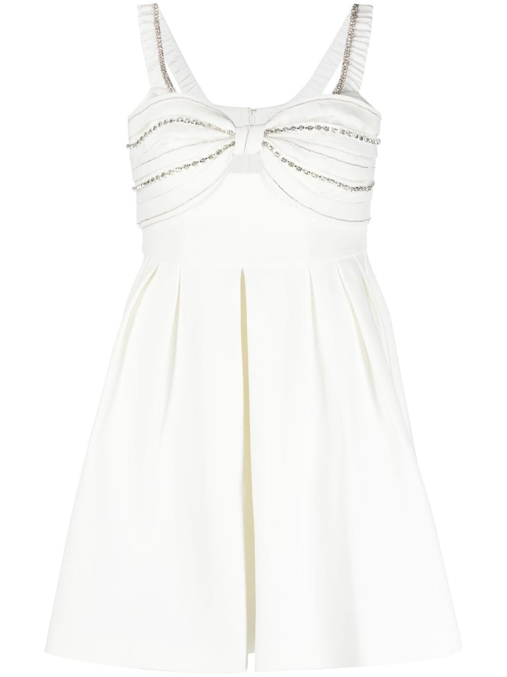 crystal-embellished mini dress Highlights - White - Cut-out detailing - Crystal embellishment - Sweetheart neck - Rear zip fastening - Sleeveless - Flared - Straight hem - Thigh-length Made in United Kingdom Composition Outer: Polyester 100% Lining: Polyester 100% SIZE & FIT Model measurements Height 5 ft 10 in(1.79 m) Bust/Chest 31.1 in(79 cm) Hips 35.03 in(89 cm) Waist 24.01 in(61 cm) Measurement HIPS 44.09 in(112 cm) LENGTH 31.88 in(81 cm) WAIST 29.13 in(74 cm) BUST 35.43 in(90 cm) FittingInformation Designed for a close fit at the chest and waist with a loose fit at the hip The elasticated shoulders offer movement and a comfortable fit Made from a midweight non-stretch fabric This piece fits true to size – take your usual size
