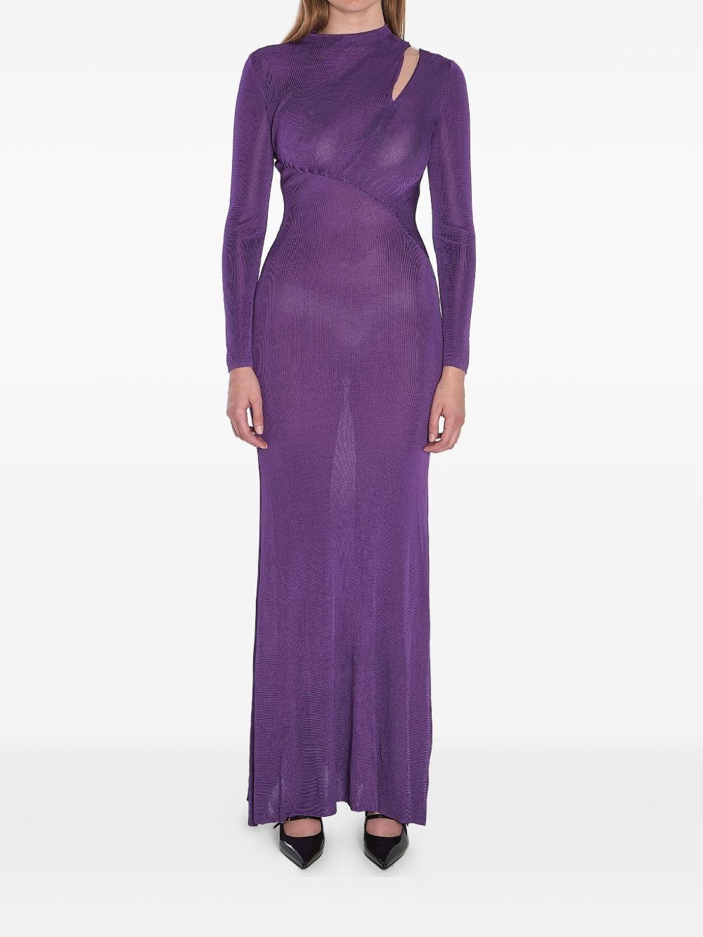cut-out dress Highlights - Grape purple - Cut-out detailing - Draped detailing - Crew neck - Long sleeves Imported Composition Viscose 100% Washing instructions Read Manufacturer Guidelines