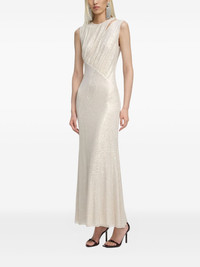cut-out midi dress Highlights - Champagne - Rhinestone embellishment - Cut-out detail - Sleeveless - Draped detail - Round neck Imported Composition Outer: Polyester 93%, Elastane 7% Lining: Polyester 93%, Spandex/Elastane 7% Washing instructions Read Manufacturer Guidelines