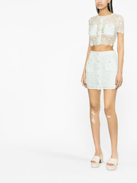 daisy lace-detail miniskirt This miniskirt from Self-Portrait is cut from daisy guipure lace and is enhanced by diamante pearl button detailing. Highlights - Mint green - Floral-lace detailing - Faux-pearl buttons - Two front patch pockets - Thigh-length Made in United Kingdom Composition Lining: Polyester 100% Outer: Polyester 100% SIZE & FIT Model measurements Height 5 ft 10 in(1.77 m) Bust/Chest 32.67 in(83 cm) Hips 35.43 in(90 cm) Waist 23.62 in(60 cm) FittingInformation This mini-length skirt is intended to be worn just below the waist Made from a midweight non-stretch fabric This piece fits true to size – take your usual size Washing instructions Dry Clean Only