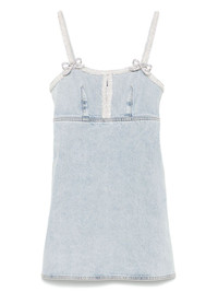 denim mini dress Highlights - Light blue - Rear zip fastening - Bow detailing - Faux-pearl embellishment - Rhinestone embellishment Made in United Kingdom Composition Lining: Polyester 65%, Cotton 35% Outer: Cotton 100% SIZE & FIT Model measurements Height 5 ft 9 in(1.75 m) Bust/Chest 31.88 in(81 cm) Hips 34.64 in(88 cm) Waist 24.01 in(61 cm) FittingInformation Designed for a slim fit that sits just away from the body offering a close yet comfortable fit Sturdy and hard-wearing, this denim piece offers no stretch