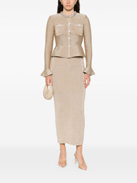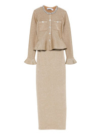 embellished midi dress Highlights - Gold-tone - Embellished neckline - Ruffled cuffs - Button fastening - Peplum hem - Two chest pockets Imported Composition Cotton 33%, Polyester 23%, Viscose 22%, Metallic Fibre 14%, Wool 8% SIZE & FIT Model measurements Height 5 ft 9 in(1.75 m) Bust/Chest 32.67 in(83 cm) Hips 36.22 in(92 cm) Waist 24.8 in(63 cm) Washing instructions Dry Clean Only