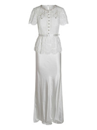 embellished peplum lace maxi dress Highlights - White - Lace bodice - Peplum hem - Short sleeves - Crystal embellishment - Satin skirt - Removable belt Imported Composition Polyester 100% Washing instructions Read Manufacturer Guidelines