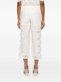 embroidered trousers Highlights - White - Elasticated drawstring waistband - Two diagonal pockets to the sides - Partial lining - Scallop hem Imported Composition Outer: Linen/Flax 54%, Cotton 46% Lining: Cotton 100% SIZE & FIT Model measurements Height 5 ft 11 in(1.8 m) Bust/Chest 32.67 in(83 cm) Hips 35.82 in(91 cm) Waist 25.98 in(66 cm) FittingInformation Designed for a straight-leg fit, these trousers allow for a close fit at the waist and an unrestricted, comfortable fit over the leg The elasticated waist allows for a comfortable fit Made from a lightweight non-stretch fabric