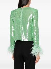 feather-trim sequinned top Highlights - Light green - Stretch-design - Sequin design - Feather-trim detailing - Crew neck - Shoulder pads - Long sleeves - Concealed rear zip fastening - Straight hem - Cropped Imported Composition Outer: Polyamide 100%, Ostrich Feather 100%, Polyester 96%, Spandex/Elastane 4% Lining: Polyester 96%, Spandex/Elastane 4% SIZE & FIT Model measurements Height 5 ft 11 in(1.8 m) Bust/Chest 33.07 in(84 cm) Hips 37.4 in(95 cm) Waist 25.19 in(64 cm) FittingInformation Designed to be unstructured, offering a loose fit throughout The internal shoulder pads offer a structured shape Made from a midweight stretch fabric, this piece offers elasticity and flexibility when worn This piece fits true to size – take your usual size