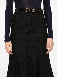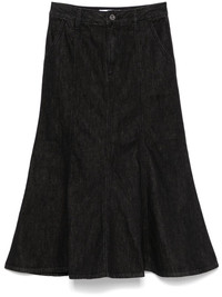 flared midi skirt Highlights - Black - Concealed fly and button fastening - Belt loops - Two rounded pockets to the sides Imported Composition Lining: Polyester 65%, Cotton 35% Outer: Cotton 100% SIZE & FIT Model measurements Height 5 ft 10 in(1.78 m) Bust/Chest 33.85 in(86 cm) Hips 36.61 in(93 cm) Waist 26.77 in(68 cm) FittingInformation This midi-length skirt is intended to be worn high on the waist Sturdy and hard-wearing, this denim piece offers no stretch Washing instructions Machine Wash