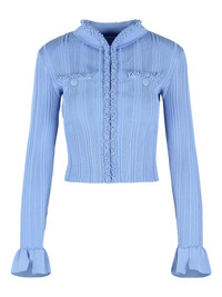 flared-sleeve cardigan Highlights - Blue - Faux pearl embellishment - Ruffled sleeves Imported Composition Viscose 50%, Polyester 32%, Polyamide 16%, Elastane 2% Washing instructions Read Manufacturer Guidelines