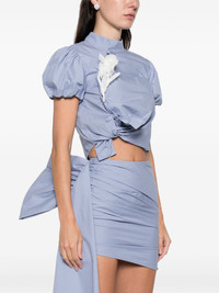 floral-applique blouse Highlights - Blue - Floral applique - Chest patch pocket - Tie detail - Short sleeves - Mock neck Imported Composition Outer: Cotton 100% Lining: Cotton 100% SIZE & FIT Model measurements Height 5 ft 10 in(1.78 m) Bust/Chest 33.46 in(85 cm) Hips 36.22 in(92 cm) Waist 23.22 in(59 cm) Washing instructions Dry Clean Only