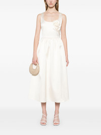 floral-appliqué satin midi dress