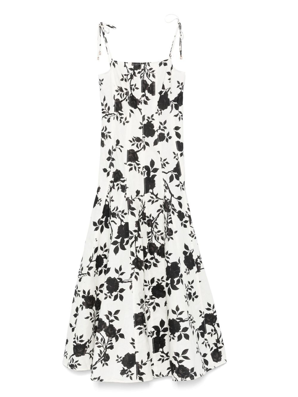 floral-print midi dress Highlights - Light beige - Concealed rear hook and zip fastening - Adjustable spaghetti straps - Square neck - Flared skirt Imported Composition Linen/Flax 54%, Cotton 46% SIZE & FIT Model measurements Height 5 ft 9 in(1.75 m) Bust/Chest 34.64 in(88 cm) Hips 36.61 in(93 cm) Waist 26.37 in(67 cm) Measurement HIPS 37.79 in(96 cm) LENGTH 52.36 in(133 cm) WAIST 29.13 in(74 cm) FittingInformation The adjustable shoulder straps allow for a preferred fit when worn Made from a midweight non-stretch fabric