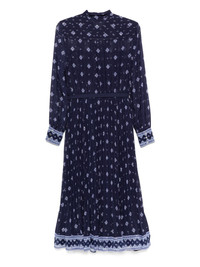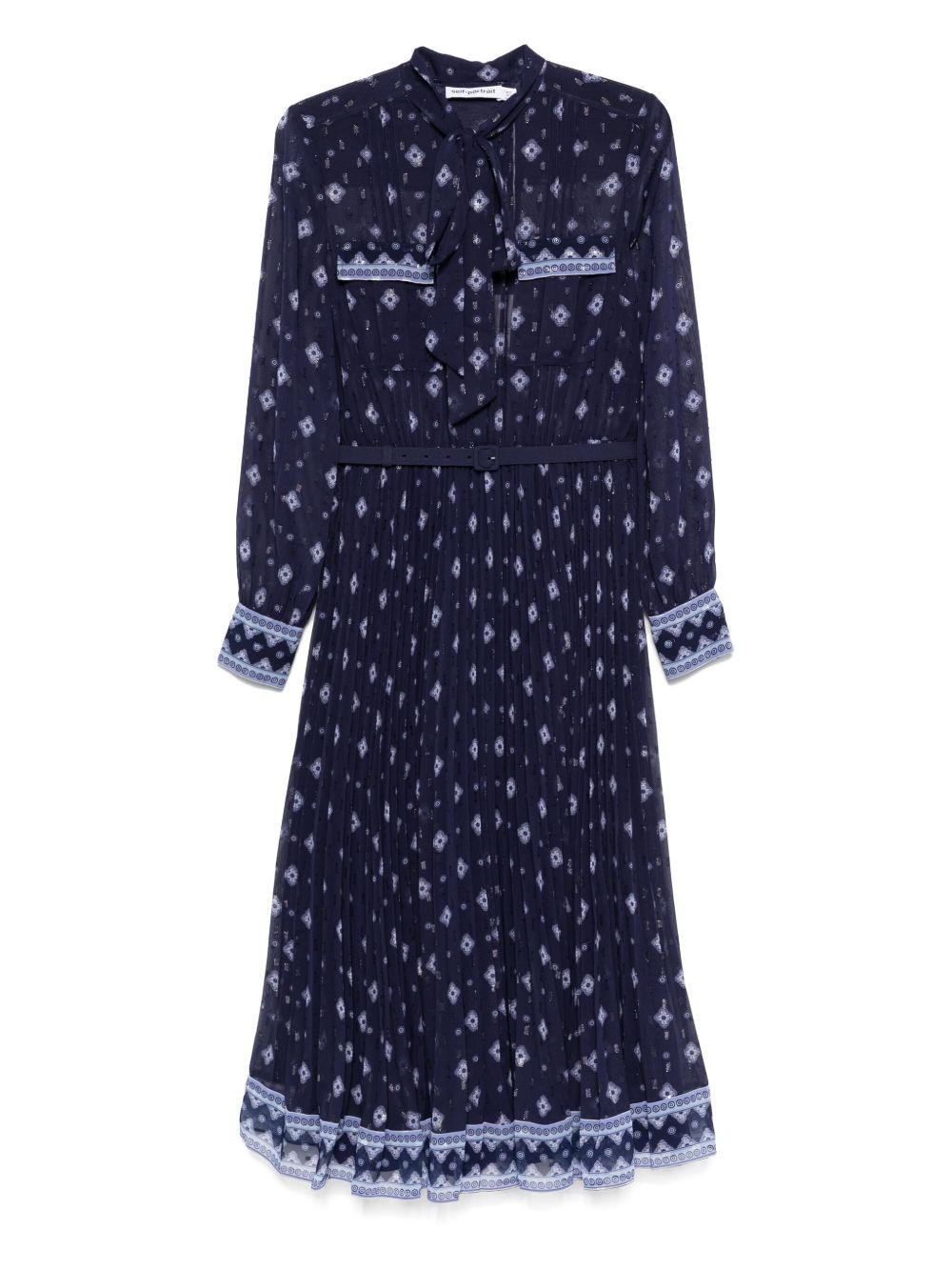 floral-print midi dress Highlights - Blue - Long sleeve - All-over floral print - Pleated skirt - Buttoned cuffs Imported Composition Outer: Polyester 98%, Metallic Fibre 2% Lining: Polyester 100% Washing instructions Dry Clean Only