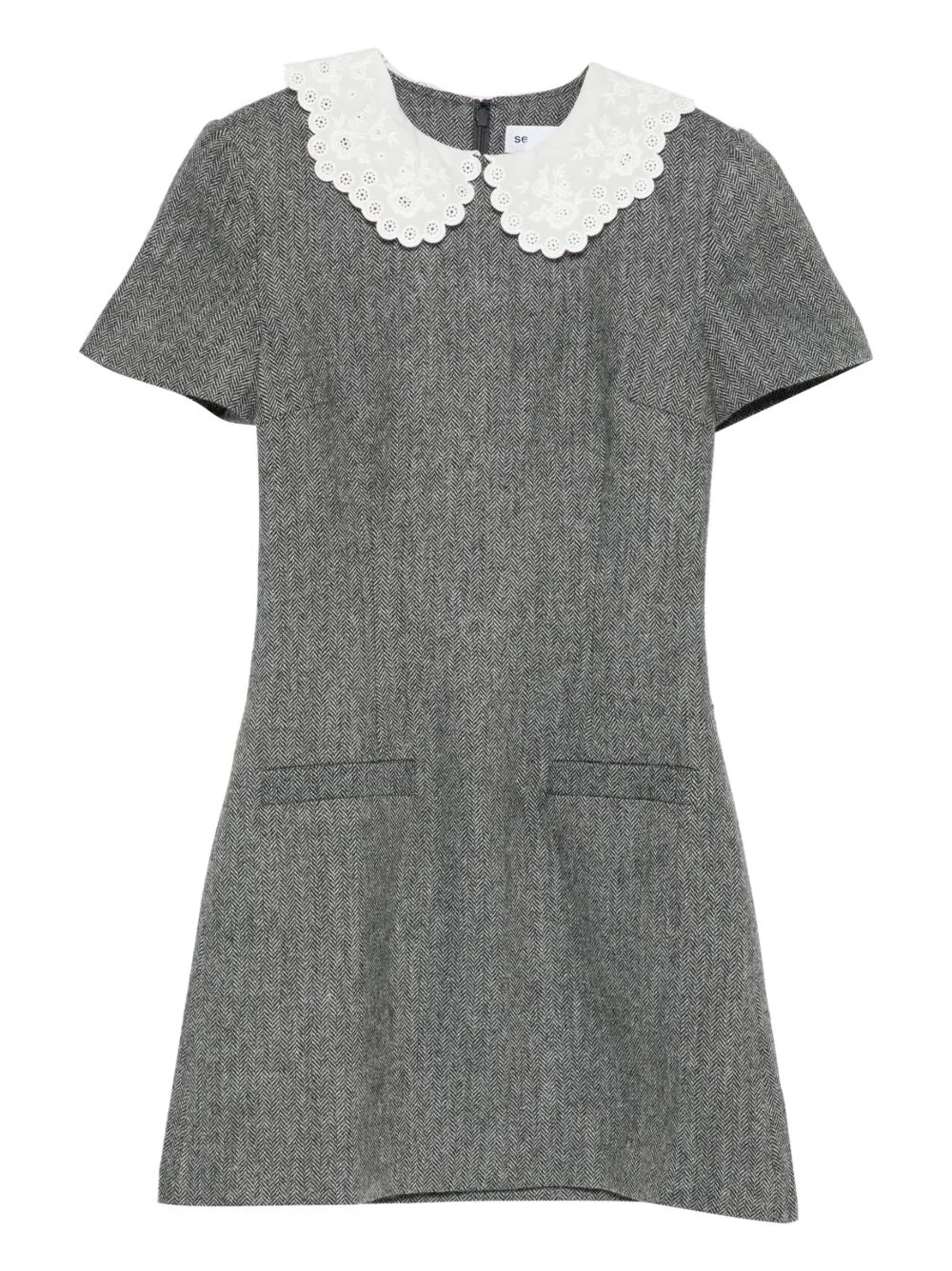 herringbone mini dress Highlights - Grey - Rear zip and hook fastening - Front pockets Imported Composition Outer: Cotton 100%, Wool 62%, Polyester 38% Lining: Polyester 100% SIZE & FIT Model measurements Height 5 ft 9 in(1.75 m) Bust/Chest 32.67 in(83 cm) Hips 36.22 in(92 cm) Waist 24.8 in(63 cm) Washing instructions Dry Clean Only
