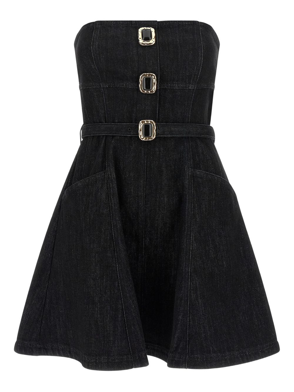 jewel-button denim mini dress Highlights - Black - Cotton denim - Flared hem - Jewel button embellishment - Back zip fastening Imported Composition Cotton 99%, Elastane 1% Washing instructions Read Manufacturer Guidelines