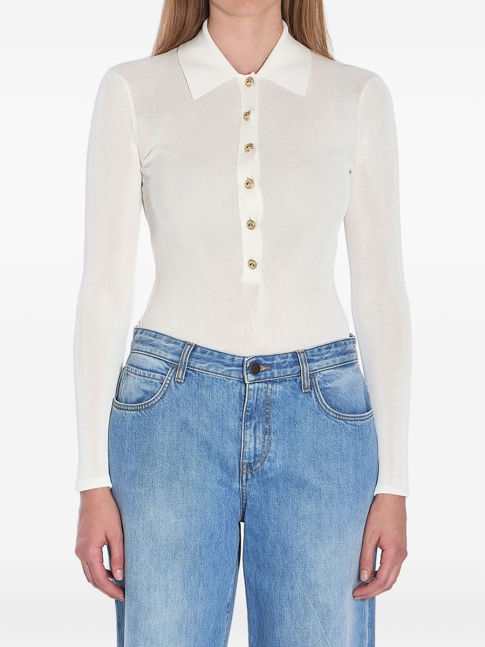 knitted body Highlights - White - Front button fastening - Polo collar - Long sleeves - Just a reminder that this piece must be tried on over your own garments. Imported Composition Viscose 100%
