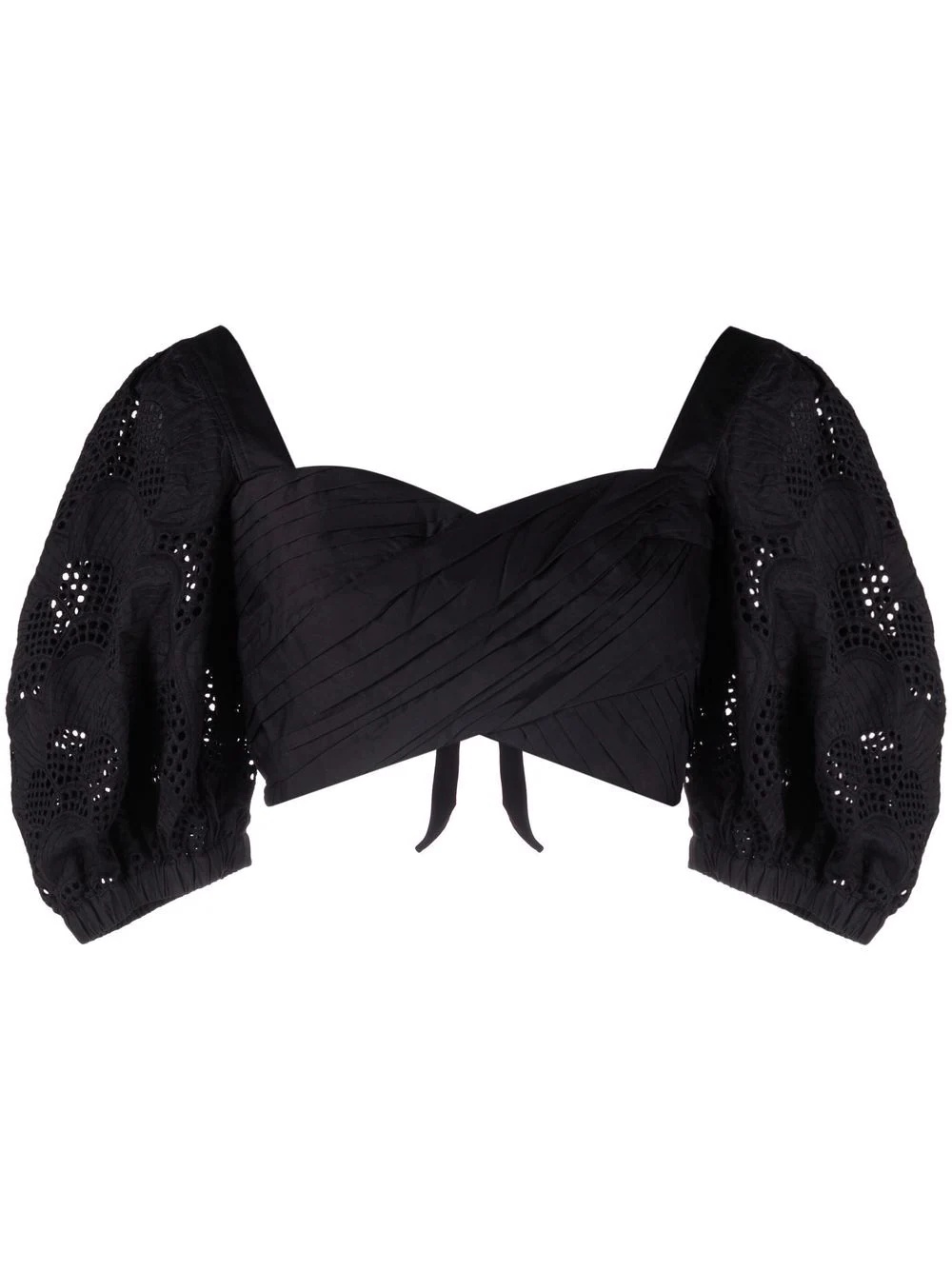 lace puff-sleeves crossover cropped top