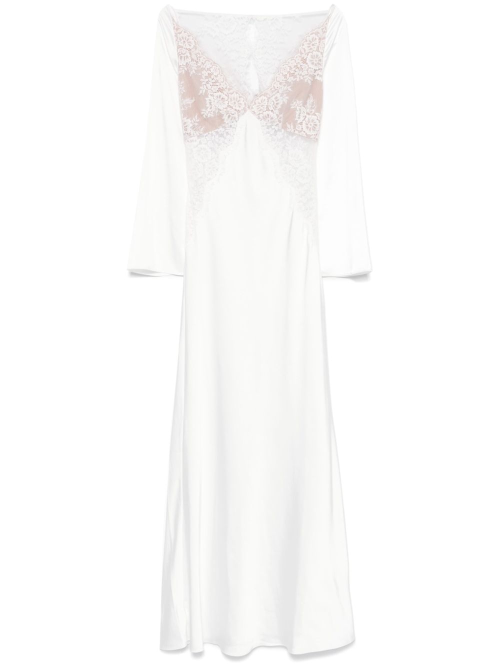 White Lace Satin Long Sleeve Maxi Dress