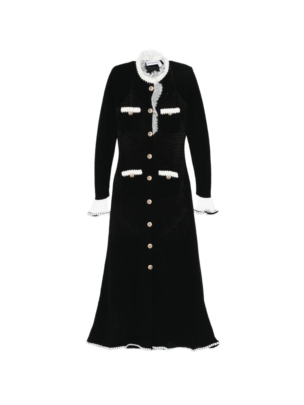 lace-trim midi dress Highlights - Black - Button fastening - Lace trim - Round neck - Long sleeves - Front pockets Imported Composition Cotton 60%, Linen/Flax 23%, Polyamide 17% Lining: Viscose 77%, Polyamide 23% Washing instructions Dry Clean Only