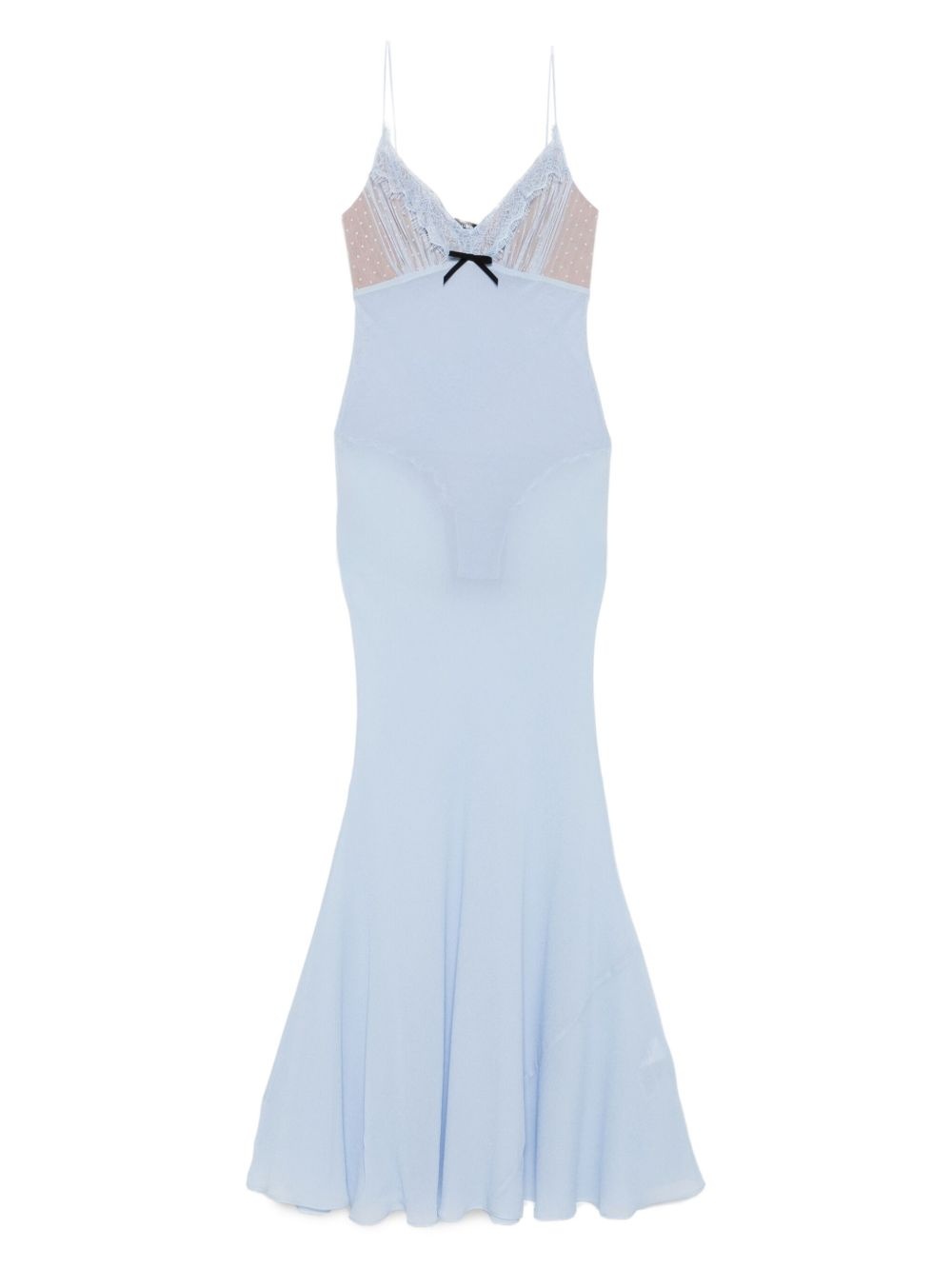 lace-trimmed slip maxi dress Highlights - Light blue - Sheer fabric - Lace detail - Bow detail - Spaghetti straps - Floor-length hem Imported Composition Outer: Polyamide 100%, Viscose 100%, Polyester 100% Lining: Polyamide 82%, Elastane 18% SIZE & FIT Model measurements Height 5 ft 10 in(1.78 m) Bust/Chest 33.85 in(86 cm) Hips 36.61 in(93 cm) Waist 26.77 in(68 cm) Washing instructions Hand Wash