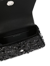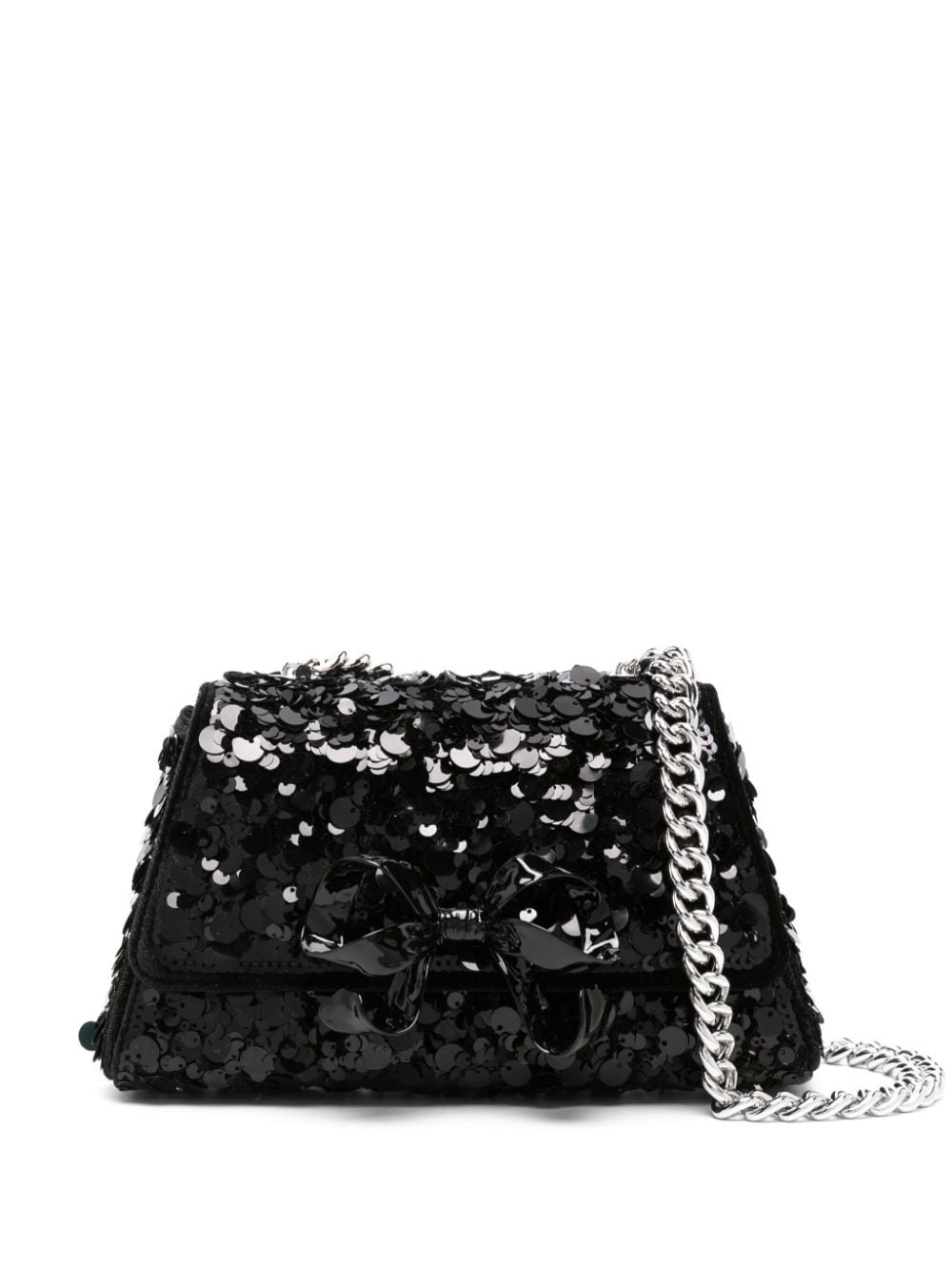 mini Bow sequin-embellished bag Self-Portrait's signature Bow bag is elevated with this mini iteration, thanks to the sequin design. Imagined in classic black, this design is made instantly recognisable due to a tonal bow at the front. Highlights - Black - Sequin detailing - Bow detailing - Chain-link shoulder strap - Foldover top with magnetic fastening - Main compartment Imported Composition Outer: Velvet 100%, Sequin 100% SIZE & FIT Model measurements Height 5 ft 10 in(1.77 m) Bust/Chest 31.1 in(79 cm) Hips 35.03 in(89 cm) Waist 23.62 in(60 cm) Measurement DEPTH 3.14 in(8 cm) HEIGHT 4.72 in(12 cm) STRAP 10.23 in(26 cm) WIDTH 8.66 in(22 cm)
