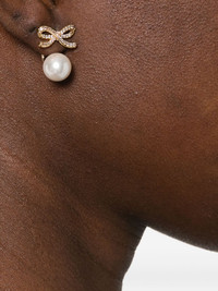 pearl bow earrings Highlights - Gold - Pearl embellishment - Bow motif - Cubic zirconia embellishment - Post fastening - Stainless steel - This is a single earring. Imported SIZE & FIT Model measurements Height 5 ft 11 in(1.8 m) Bust/Chest 32.67 in(83 cm) Hips 36.22 in(92 cm) Waist 24.4 in(62 cm) Measurement HEIGHT 0.74 in(1.9 cm) Weight (single earring) 2 g(2 g) WIDTH 0.59 in(1.5 cm)