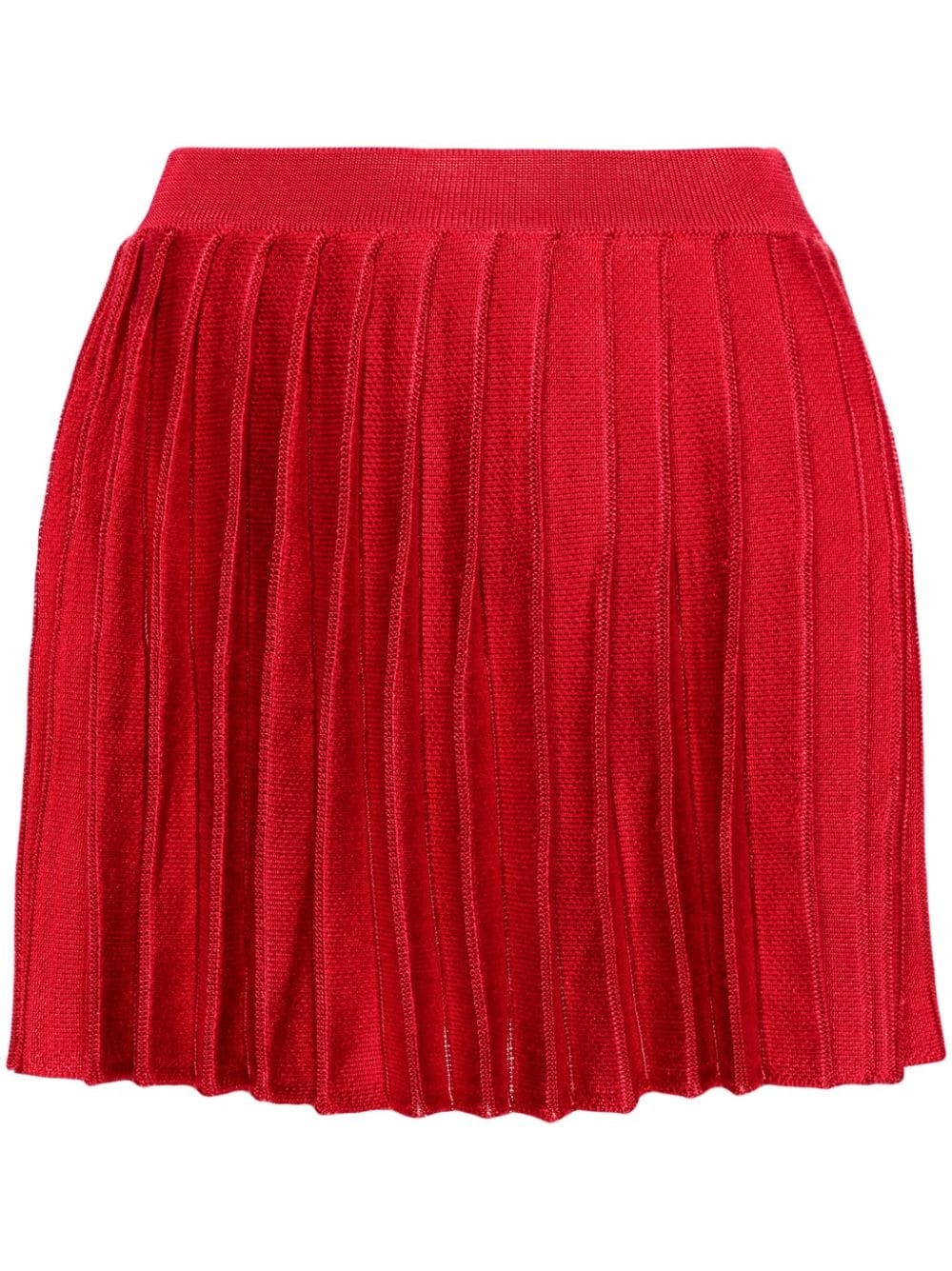 pleated knitted mini skirt Highlights - Bright red - Fine knit - Fully pleated - Slip-on style - Elasticated waistband - Unlined - Flared hem Imported Composition Polyester 44%, Cotton 34%, Polyamide 12%, Wool 9%, Elastane 1% SIZE & FIT Model measurements Height 5 ft 9 in(1.76 m) Bust/Chest 31.88 in(81 cm) Hips 35.43 in(90 cm) Waist 24.8 in(63 cm) FittingInformation This mini-length skirt is intended to be worn high on the waist The elasticated waist allows for a comfortable fit Made with a midweight knit, this piece offers some stretch This piece fits true to size – take your usual size Washing instructions Dry Clean Only