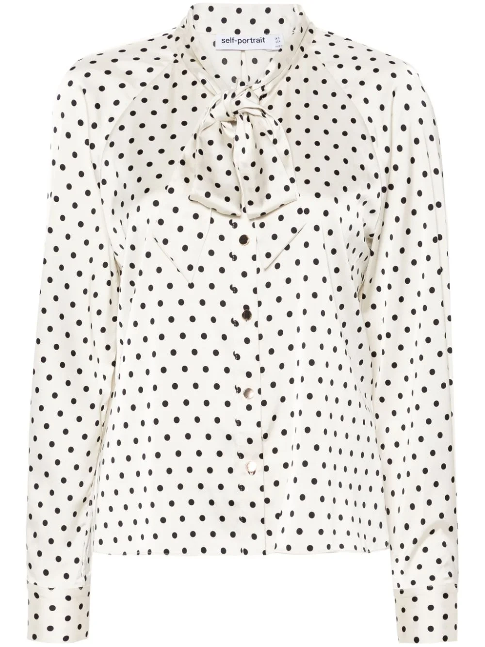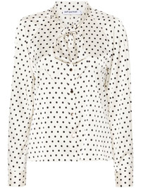 polka-dot blouse Highlights - White/black - Satin weave - Polka dot print - Gathered tie neck - Long sleeves - Buttoned cuffs - Front button fastening - Curved hem Imported Composition Polyester 96%, Spandex/Elastane 4% SIZE & FIT Model measurements Height 5 ft 10 in(1.77 m) Bust/Chest 29.92 in(76 cm) Hips 34.25 in(87 cm) Waist 23.62 in(60 cm) FittingInformation Designed to be unstructured, offering a loose fit throughout Made from a midweight fabric This piece fits true to size – take your usual size Washing instructions Dry Clean Only