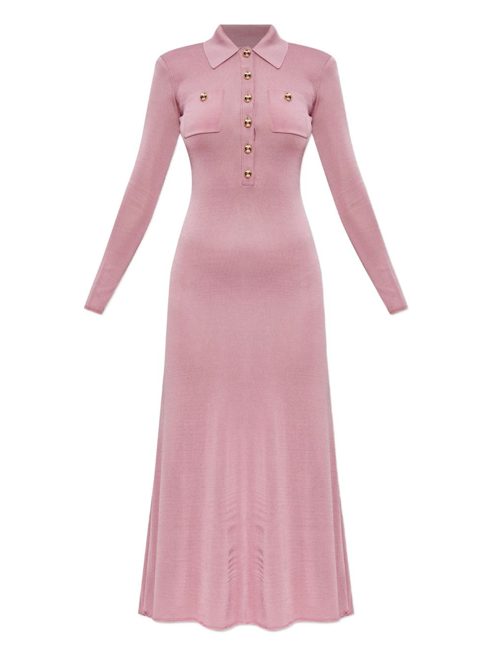 polo-neck button-front dress Highlights - Pink - Polo neck - Long sleeves - Button front - Flap pockets Imported Composition Viscose 80%, Cotton 17%, Polyamide 3% Washing instructions Read Manufacturer Guidelines