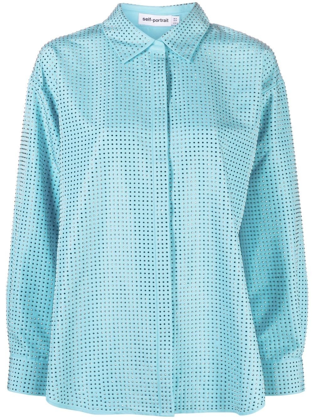rhinestone-embellished long-sleeve shirt Self-Portrait adds a glamourous touch to a classic silhouette, thanks to all-over rhinestone embellishment that adorns this oversized long-sleeve shirt. Imported Composition Polyester 100% SIZE & FIT Model measurements Height 5 ft 10 in(1.77 m) Bust/Chest 31.49 in(80 cm) Hips 33.85 in(86 cm) Waist 22.44 in(57 cm) Measurement LENGTH 27.95 in(71 cm) FittingInformation This piece fits true to size. We recommend you get your regular size Cut for a loose fit Made with a mid-weight fabric Washing instructions Hand Wash