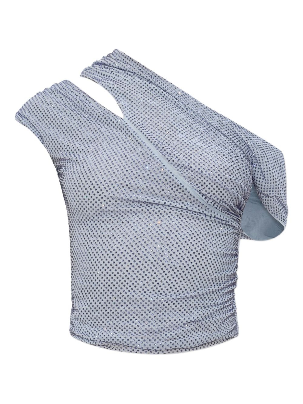 rhinestone-embellished top Highlights - Baby blue - Stretch-design - One-shoulder - Single short sleeve - Cut-out detailing Imported Composition Outer: Polyester 93%, Elastane 7% Lining: Polyester 93%, Elastane 7% Washing instructions Read Manufacturer Guidelines