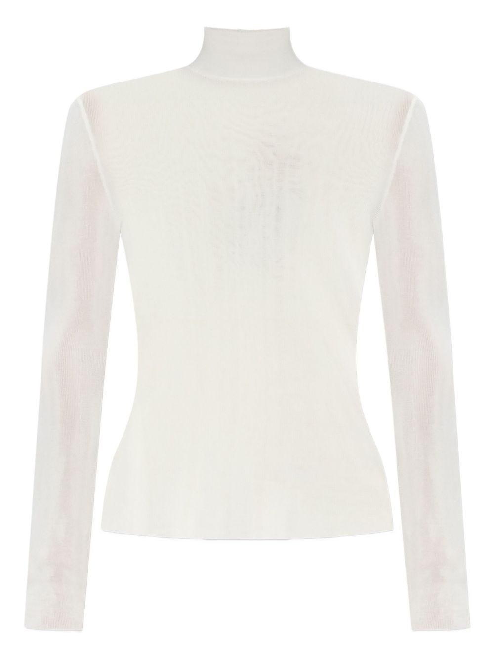 ribbed high-neck top Highlights - White - High neckline - Long sleeves - Ribbed knit Imported Composition Viscose 100% Washing instructions Read Manufacturer Guidelines