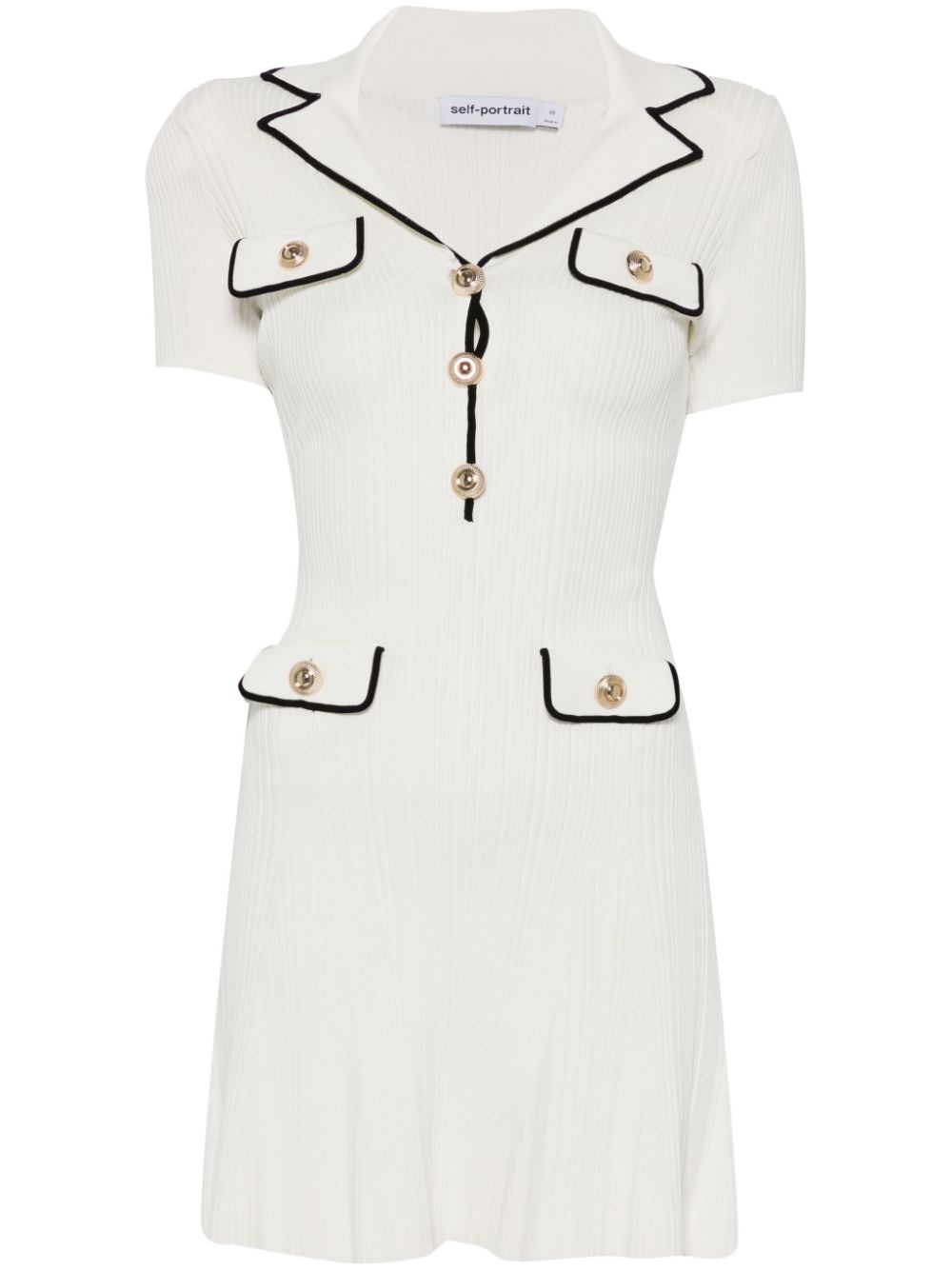 ribbed-knit mini dress Highlights - White - Front button placket - Two side flap pockets - Contrasting trim - Shoulder pads Made in United Kingdom Composition Viscose 50%, Polyester 32%, Polyamide 16%, Elastane 2% SIZE & FIT Model measurements Height 5 ft 11 in(1.8 m) Bust/Chest 31.49 in(80 cm) Hips 35.82 in(91 cm) Waist 24.8 in(63 cm) FittingInformation Designed for a close fit throughout Made with a midweight knit, this piece offers some stretch Washing instructions Dry Clean Only