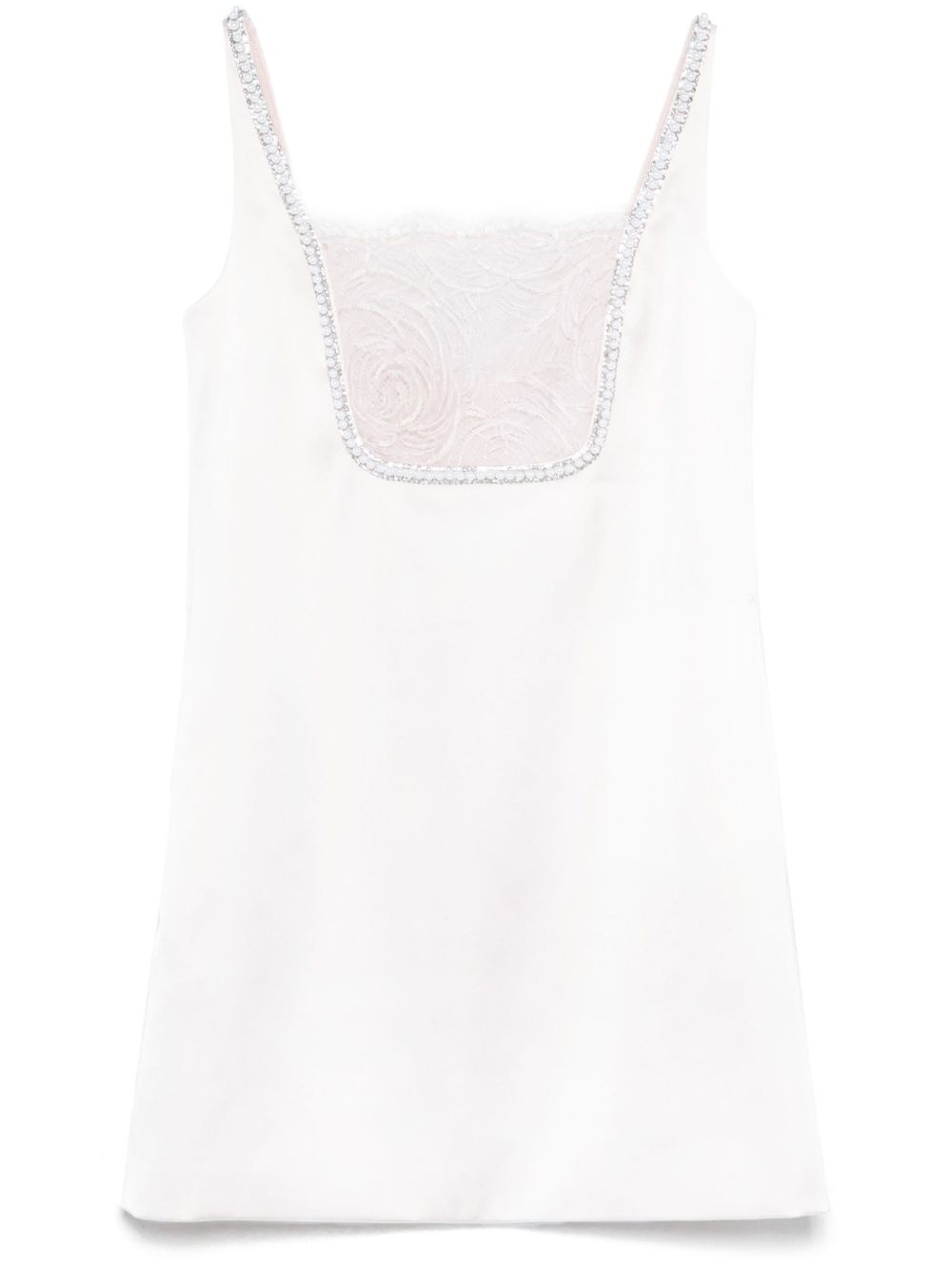 satin mini dress Highlights - Light pink - Rear zip fastening - Two side slash pockets - Lace trim - Faux-pearl embellishment Imported Composition Outer: Polyester 100% Lining: Polyester 100% SIZE & FIT Model measurements Height 5 ft 11 in(1.8 m) Bust/Chest 32.67 in(83 cm) Hips 36.22 in(92 cm) Waist 24.4 in(62 cm) FittingInformation Designed for a relaxed fit, this piece allows for comfort and movement when worn Made from a midweight non-stretch fabric