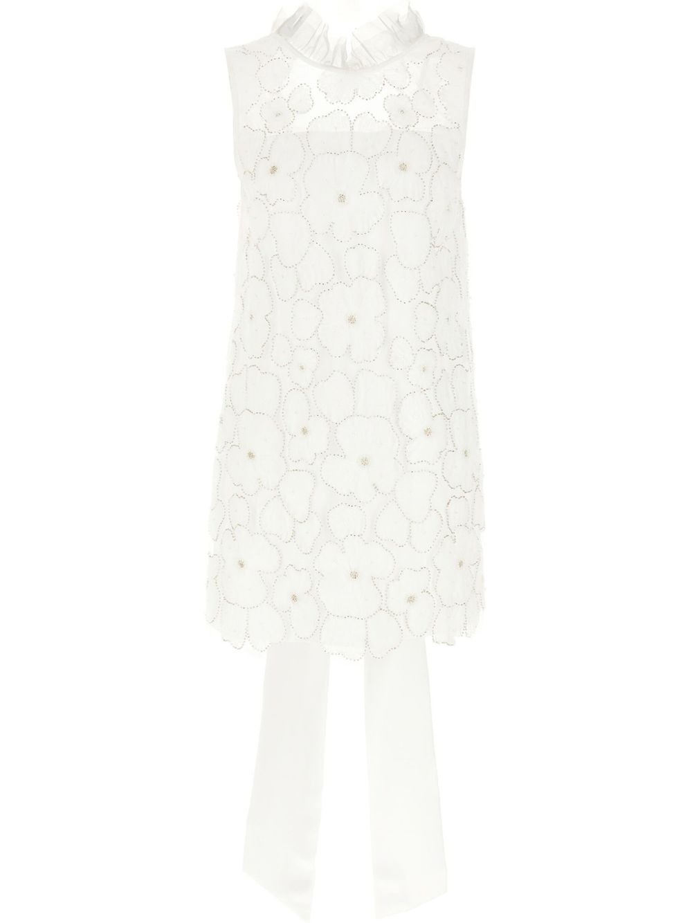 satin mini dress Highlights - White - All-over floral embroidery - Sleeveless - Rear tie fastening - Thigh-length Imported Composition Polyester 100% Washing instructions Read Manufacturer Guidelines