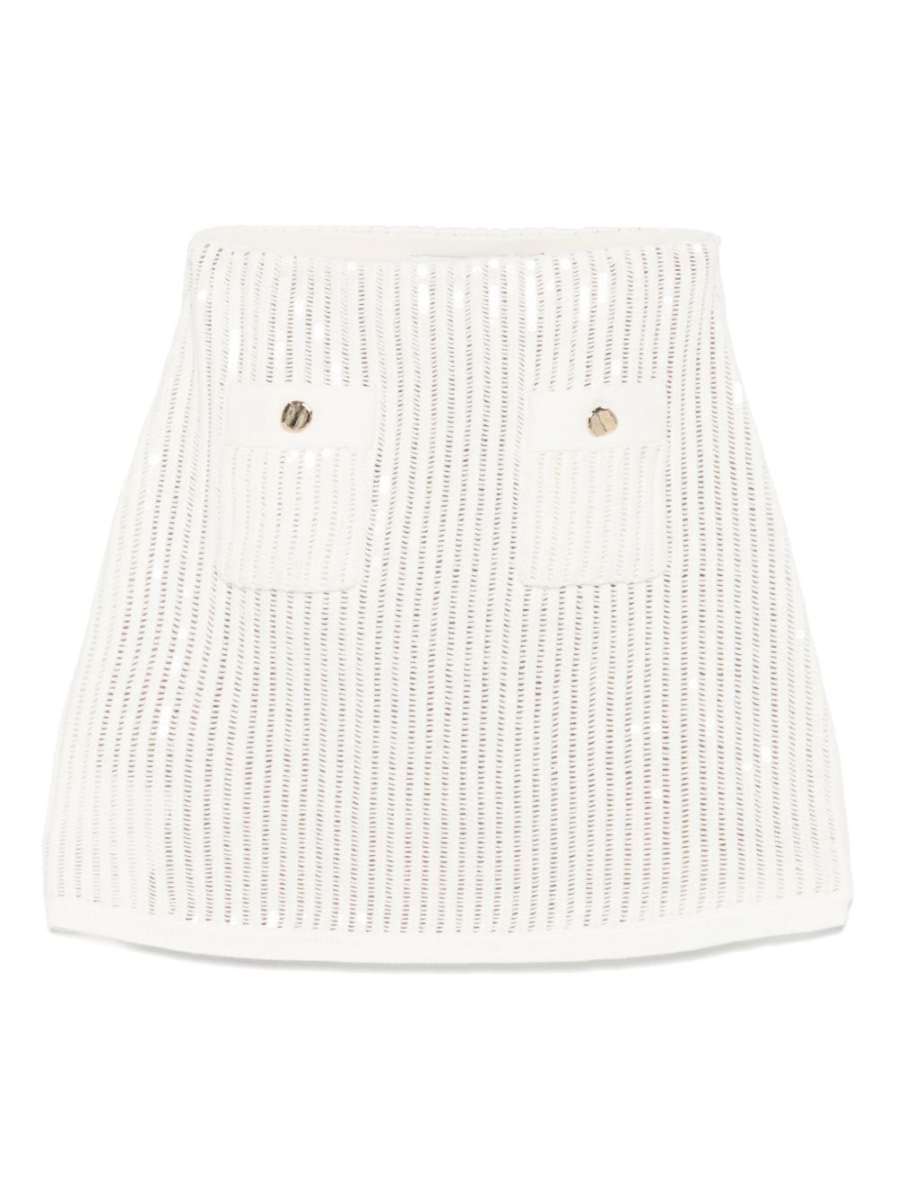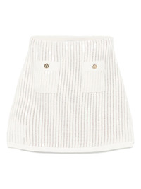 sequined crochet mini skirt Highlights - White - Elasticated waistband - Two front patch pockets - Full lining Imported Composition Lining: Viscose 57%, Polyamide 43% Outer: Cotton 96%, Cashmere 4% SIZE & FIT Model measurements Height 5 ft 9 in(1.76 m) Bust/Chest 31.88 in(81 cm) Hips 35.43 in(90 cm) Waist 24.8 in(63 cm) FittingInformation This mini-length skirt is intended to be worn high on the waist Made with a midweight knit, this piece offers some stretch
