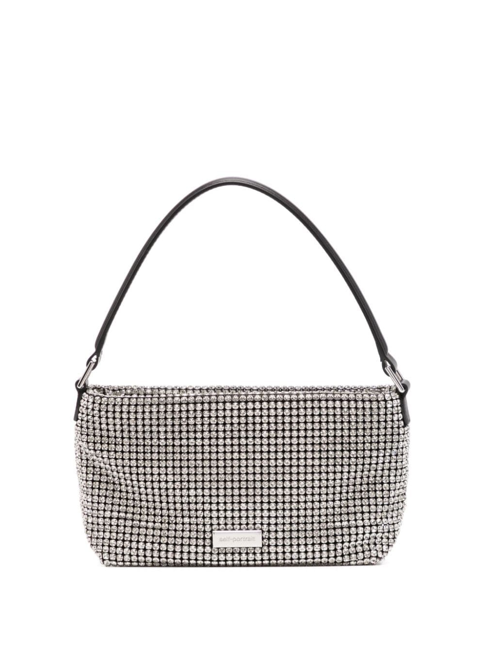 small Diamante shoulder bag Presented in a small size, this Self-Portrait shoulder bag is adorned with a rhinestone rhinestone embellishment. The brand's signature applique logo at the front adds a distinctive branding note. Highlights - Silver-tone - Rhinestone embellishment - Applique logo - Single top handle - Top zip fastening - Main compartment - Internal slip pocket Made in Italy Composition Outer: Polyester 100% SIZE & FIT Model measurements Height 5 ft 11 in(1.8 m) Bust/Chest 31.1 in(79 cm) Hips 36.22 in(92 cm) Waist 25.98 in(66 cm) Measurement DEPTH 2.75 in(7 cm) HANDLE 5.9 in(15 cm) HEIGHT 5.31 in(13.5 cm) WIDTH 7.87 in(20 cm)