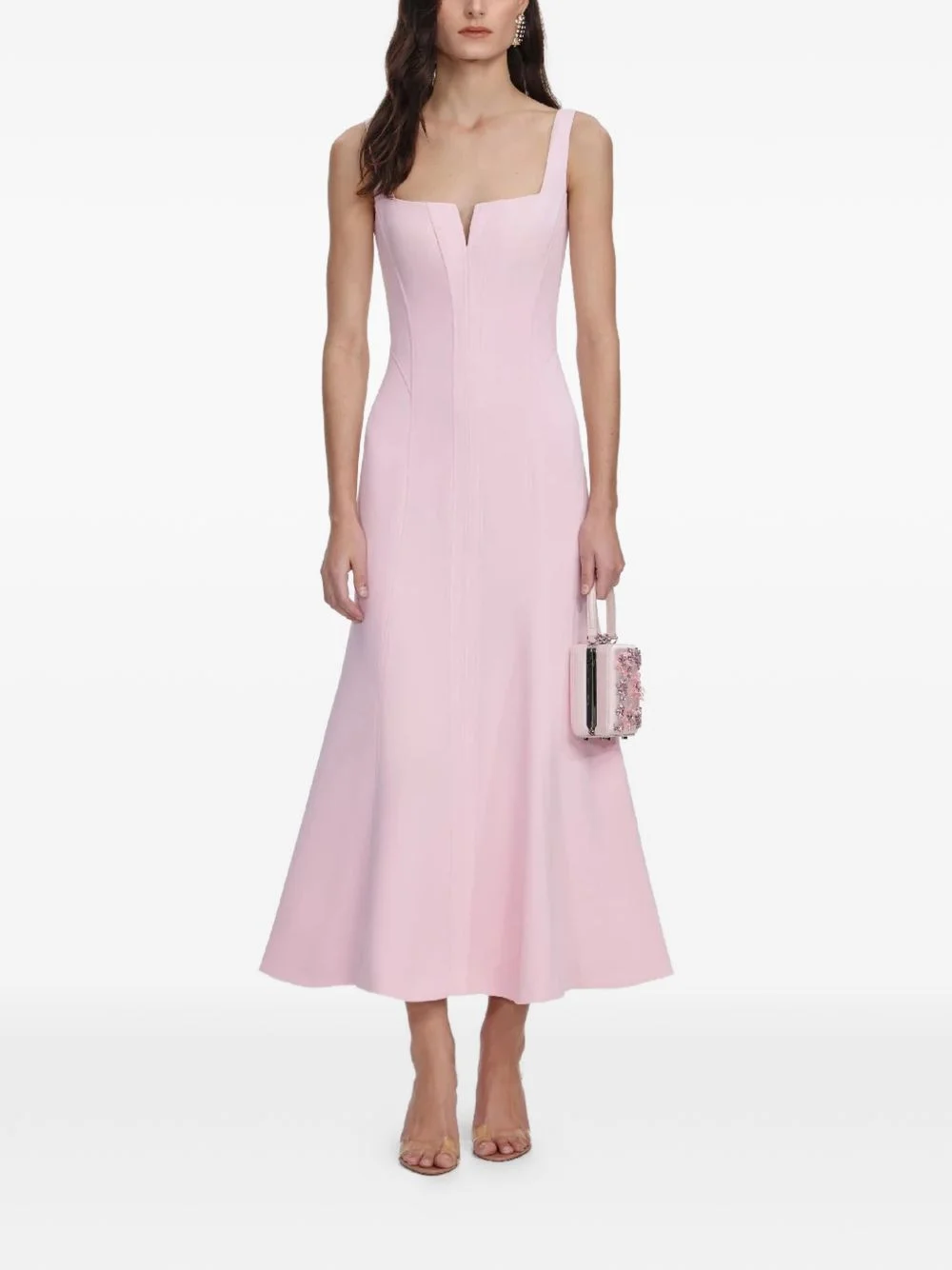 square-neck midi dress Highlights - Pink - Square v-neck - Wide straps - Concealed back zip fastening - Mermaid skirt Imported Composition Lining: Polyester 100% Outer: Polyester 100% Washing instructions Read Manufacturer Guidelines