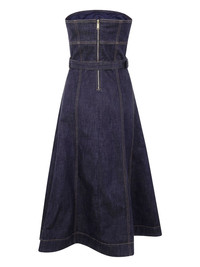 strapless belted denim midi dress Highlights - Indigo blue - Belted waist - Exposed rear zip fastening - Flared skirt - Panelled design Imported Composition Cotton 100% Washing instructions Read Manufacturer Guidelines