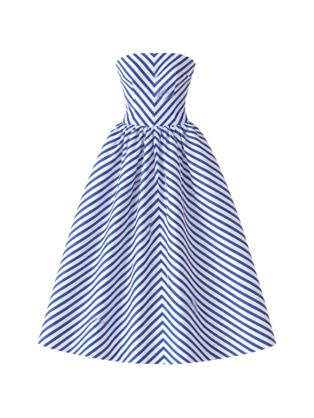 striped midi dress Highlights - Blue - Striped pattern - Strapless - Gathered detailing - A-line - Midi length Imported Composition Outer: Polyester 100% Lining: Polyester 90%, Elastane 10%
