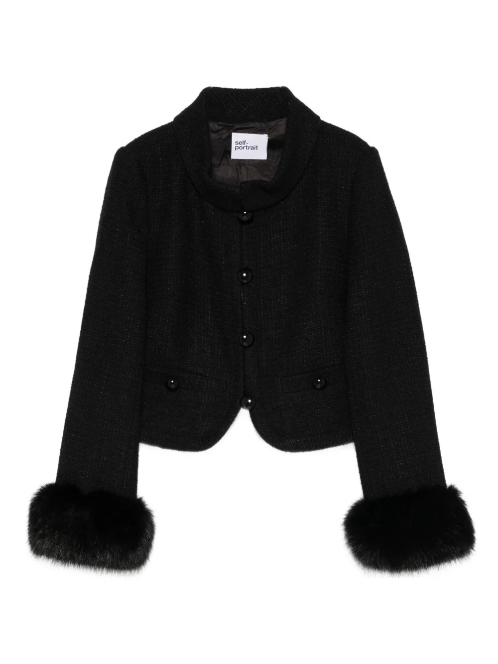 tweed jacket Highlights - Black - Faux-fur trim - Button fastening - Mock neck - Long sleeves - Tweed Imported Composition Outer: Polyester 100% Lining: Cupro 100% SIZE & FIT Model measurements Height 5 ft 10 in(1.78 m) Bust/Chest 33.46 in(85 cm) Hips 36.22 in(92 cm) Waist 23.22 in(59 cm) Washing instructions Dry Clean Only