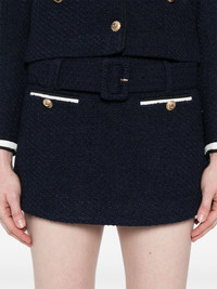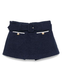 tweed skorts Highlights - Navy blue - Belted waist - Decorative button detailing - Thigh-length Imported Composition Outer: Polyester 40%, Acrylic 26%, Wool 24%, Polyamide 10% Lining: Polyester 100% SIZE & FIT Model measurements Height 5 ft 9 in(1.75 m) Bust/Chest 34.64 in(88 cm) Hips 36.61 in(93 cm) Waist 26.37 in(67 cm) FittingInformation Designed for a slim fit that sits just away from the body offering a close yet comfortable fit The belt offers adjustability for fitted preferences Made from a midweight fabric Washing instructions Dry Clean Only