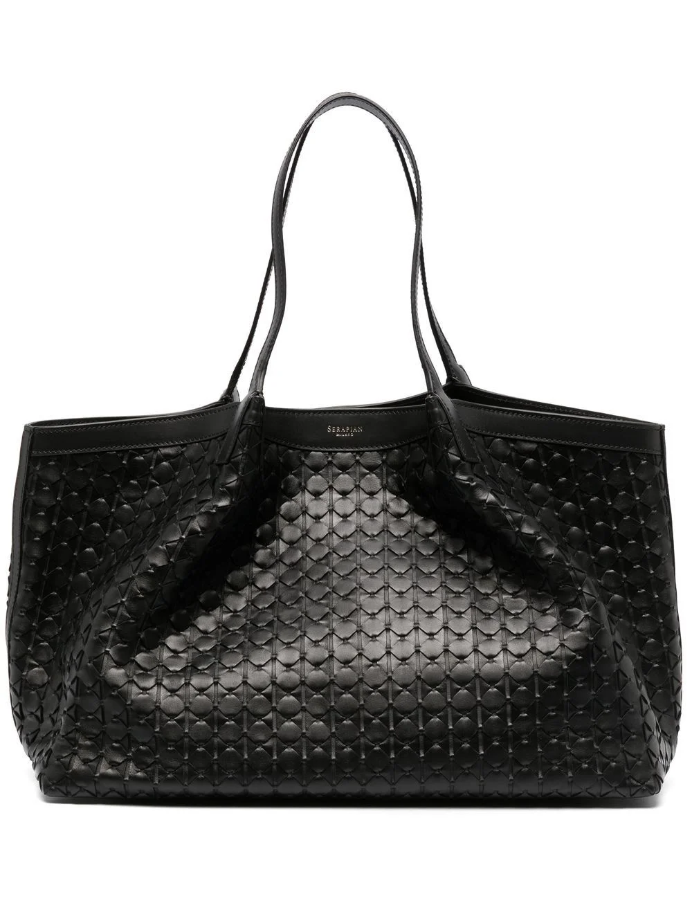textured shoulder bag black calf leather textured finish logo print to the front two flat top handles concealed press-stud fastening Made in Italy Composition Outer: Calf Leather 100% SIZE & FIT Model measurements Height 5 ft 9 in(1.75 m) Bust/Chest 31.1 in(79 cm) Hips 33.46 in(85 cm) Waist 23.22 in(59 cm) Measurement DEPTH 8.66 in(22 cm) HEIGHT 12.59 in(32 cm) WIDTH 19.29 in(49 cm)
