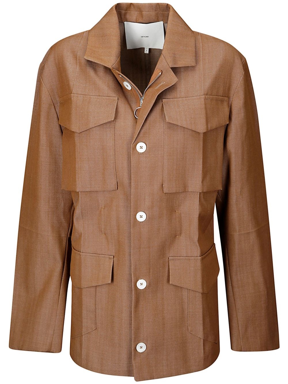 button-down blazer Highlights - Animalier brown - Virgin wool - Front button fastening - Spread collar - Four front flap pockets - Long sleeves - Straight hem Made in Italy Composition Virgin Wool 100% Washing instructions Read Manufacturer Guidelines