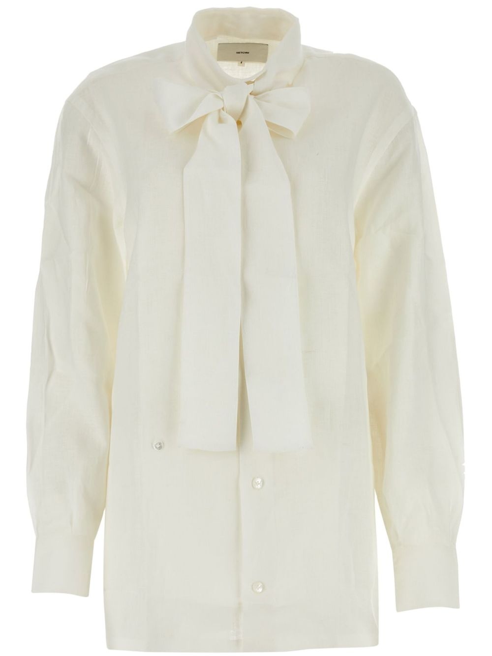 Kimono shirt Highlights - White - Linen/flax - Front button fastening - Pussy-bow collar - Long sleeves - Buttoned cuffs - Straight hem Made in Italy Composition Linen/Flax 100%