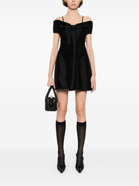 bow mini dress Highlights - Black - Rear zip fastening - Two adjustable detachable shoulder straps - Smocked panel Imported Composition Wool 56%, Silk 44% SIZE & FIT Model measurements Height 5 ft 10 in(1.78 m) Bust/Chest 29.92 in(76 cm) Hips 34.64 in(88 cm) Waist 24.8 in(63 cm) FittingInformation Designed for a close fit at the chest and waist with a loose fit at the hip The internal bodice offers support and shape Made from a midweight non-stretch fabric Washing instructions Dry Clean Only