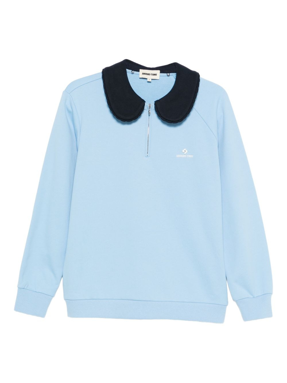 cotton sweatshirt Highlights - Blue - Contrasting collar - Half zip fastening - Long sleeves - Straight hem Imported Composition Cotton 100% SIZE & FIT Model measurements Height 5 ft 10 in(1.77 m) Bust/Chest 32.28 in(82 cm) Hips 35.03 in(89 cm) Waist 25.19 in(64 cm) Washing instructions Read Manufacturer Guidelines