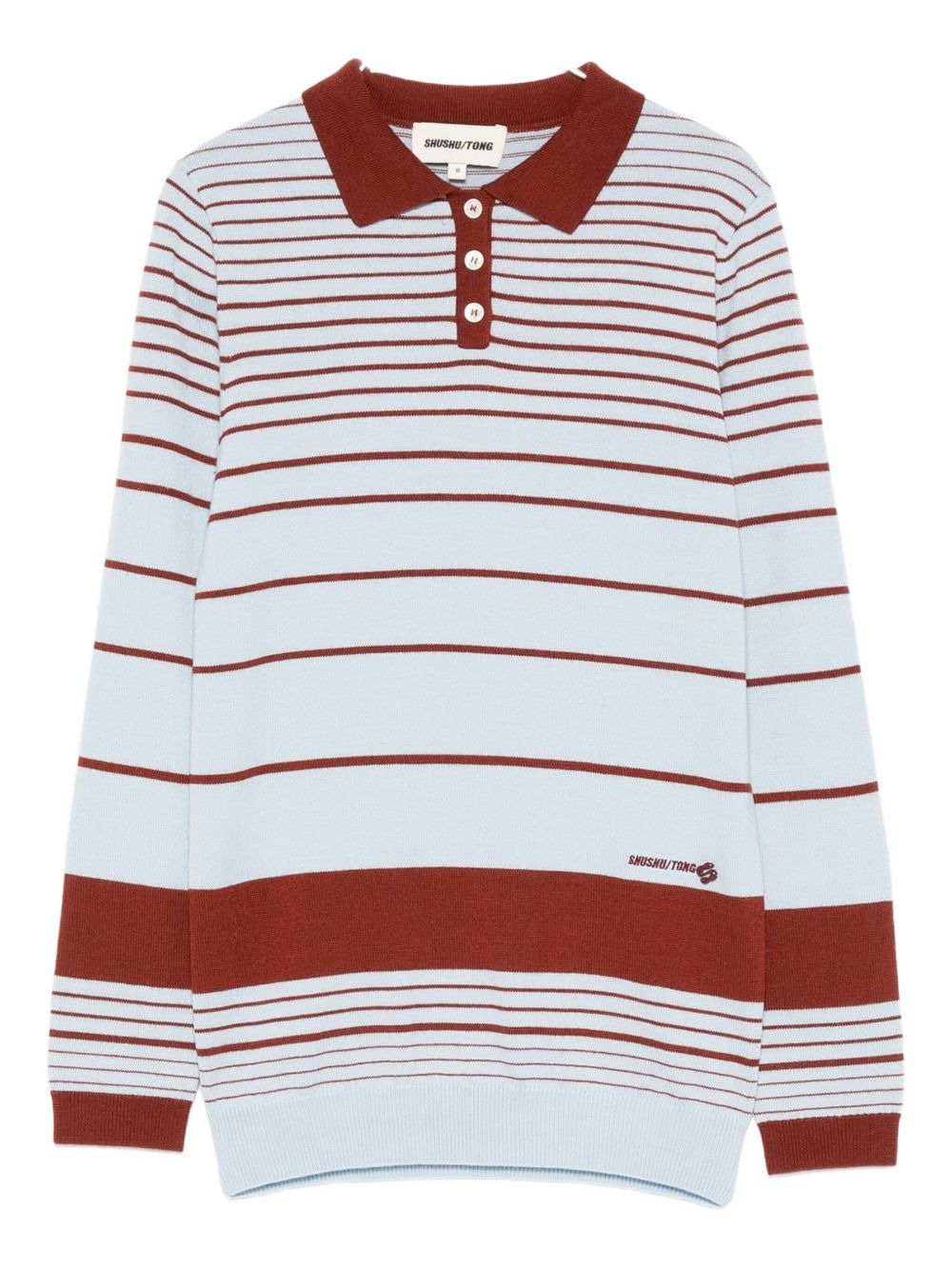 striped fine-knit polo top Highlights - Blue - Striped - Button fastening - Polo collar - Long sleeves - Ribbed cuffs Imported Composition Polyester 40%, Acrylic 31%, Wool 29% SIZE & FIT Model measurements Height 5 ft 11 in(1.8 m) Bust/Chest 30.7 in(78 cm) Hips 35.23 in(89.5 cm) Waist 25.19 in(64 cm) Washing instructions Read Manufacturer Guidelines
