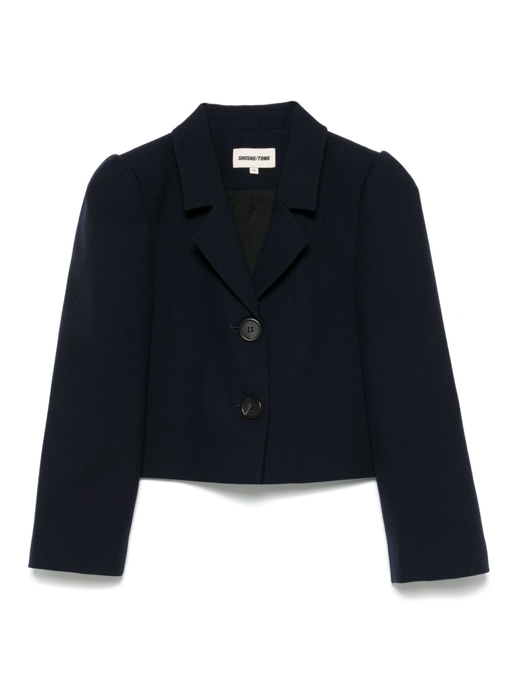 wool-blend blazer Highlights - Oxford blue - Front button fastening - Notched lapels - Mutton sleeves - Cropped Imported Composition Outer: Wool 98%, Silk 2% Lining: Polyester 100%, Wool 98%, Silk 2%