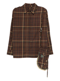 Athelia checked embellished top Highlights - Brown - Checked pattern - Long sleeves - Detachable crossbody pouch featuring ruffle trim and embellishments - Attached pocket - Coin embellishment Imported Composition Cotton 100% SIZE & FIT Model measurements Height 5 ft 10 in(1.78 m) Bust/Chest 33.46 in(85 cm) Hips 36.22 in(92 cm) Waist 23.22 in(59 cm) Washing instructions Machine Wash